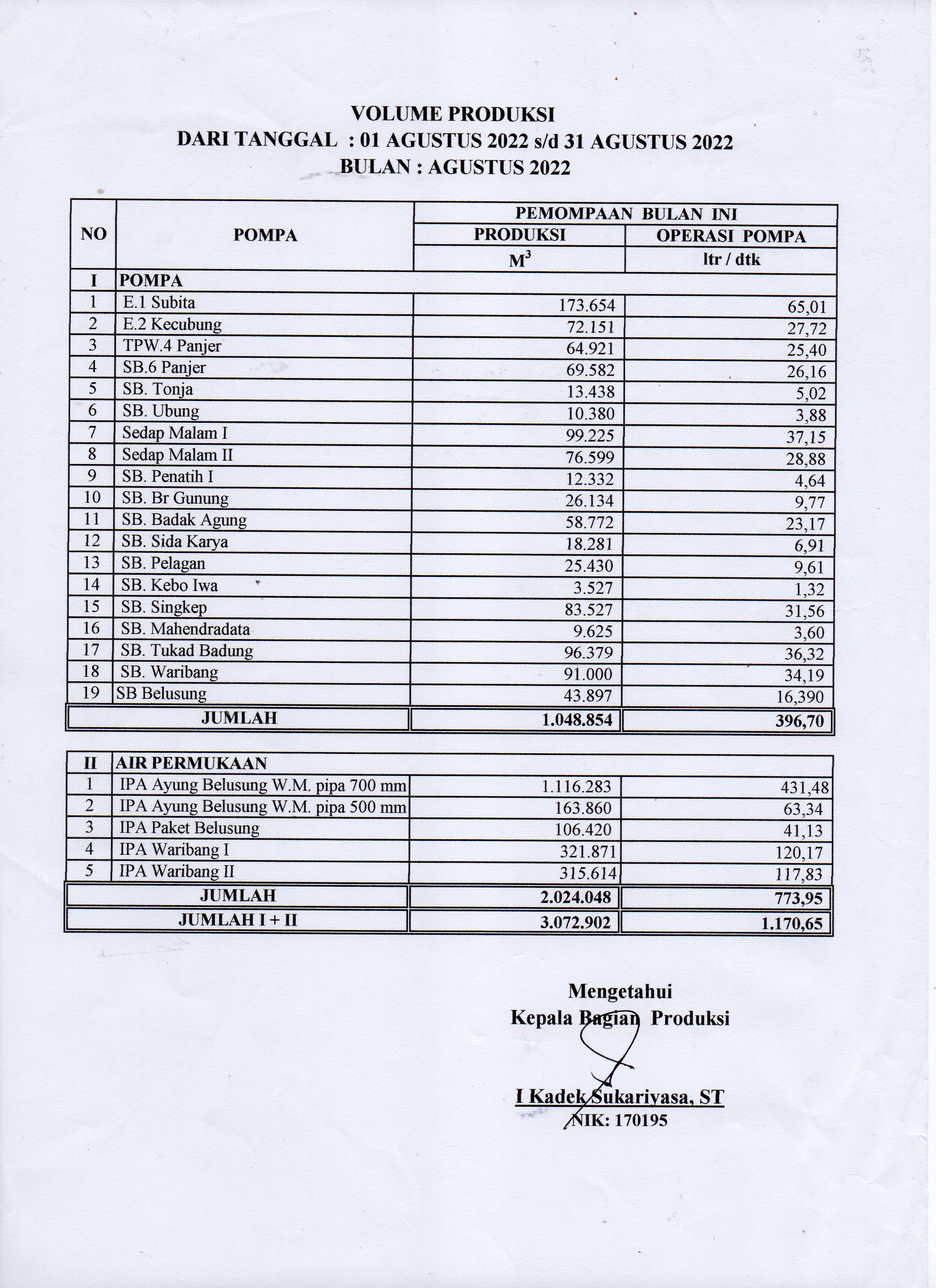| 17 | VOLUME PRODUKSI AGUSTUS 2022 | 843 kali | File |